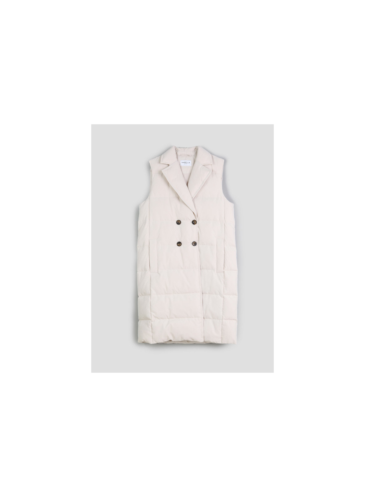 Gilet imbottito in tela antigoccia trapuntata, dalla linea dritta. Il modello senza maniche presenta collo a rever, chiusura a doppiopetto, tasche a filetto. Ideale per i primi freddi e per creare outfit sempre al passo con le nuove tendenze moda. Pensato per la donna moderna, l'abbigliamento firmato Marella si distingue per l'inconfondibile stile ricercato e contemporaneo, massima espressione del design italiano.
