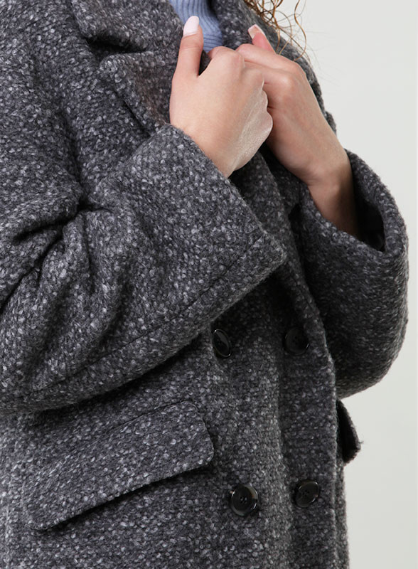 Raffinato e moderno, il cappotto doppiopetto corto di Gabriella Boutique è un capo distintivo per la stagione.