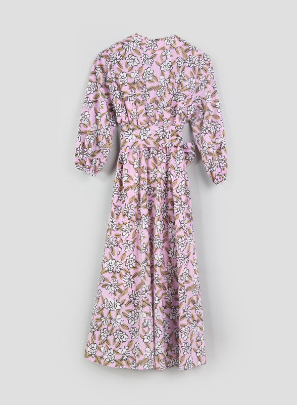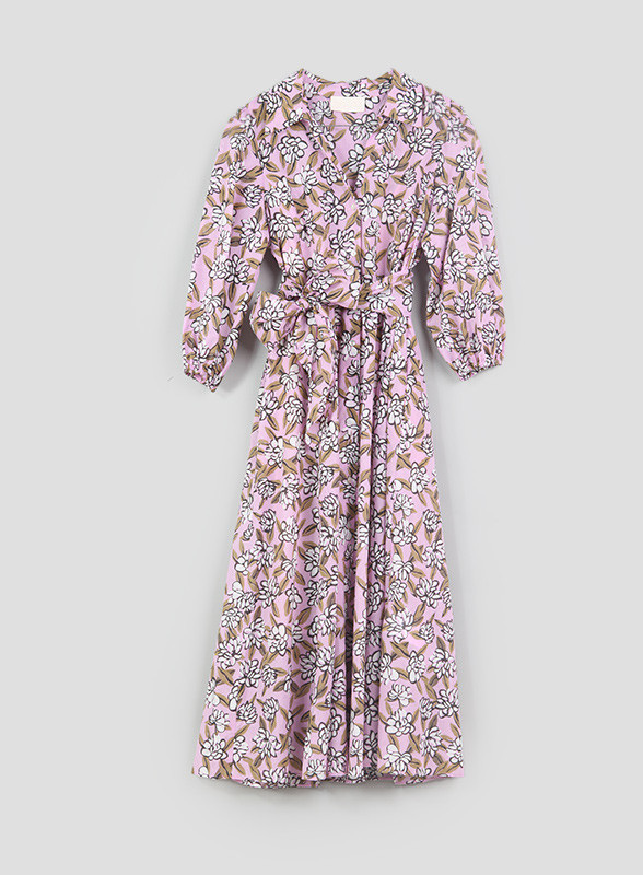 Questo chemisier lungo è realizzato in mussola di cotone stampato, garantendo una sensazione leggera e fresca sulla pelle. La linea scivolata dell'abito è arricchita da un punto vita segnato, con un elastico sul retro che assicura una vestibilità perfetta. Il capo è foderato con una sottoveste staccabile, offrendo versatilità e praticità. La chiusura con bottoni, il collo a camicia e lo scollo a V, insieme alle maniche lunghe, conferiscono un tocco classico e sofisticato. La cintura abbinata permette di personalizzare il fit, mentre le tasche inserite nei fianchi aggiungono funzionalità. Realizzato con cotone proveniente da una catena di fornitori impegnati in un’agricoltura a basso impatto ambientale, questo abito rappresenta una scelta sostenibile e di stile.