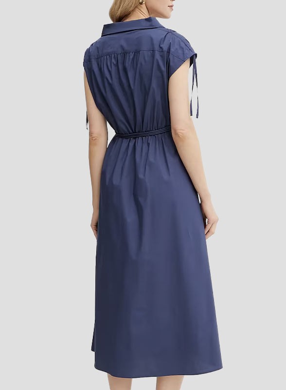 Abito midi firmato MARELLA in popeline stretch con dettagli à jour. Fit regolare, taglio in vita e scollo a V. Elegante e confortevole.
