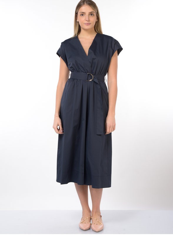 Abito midi firmato KAOS in cotone con scollo a V incrociato, maniche ad aletta e cintura. Firmato e perfetto per uno stile casual raffinato.