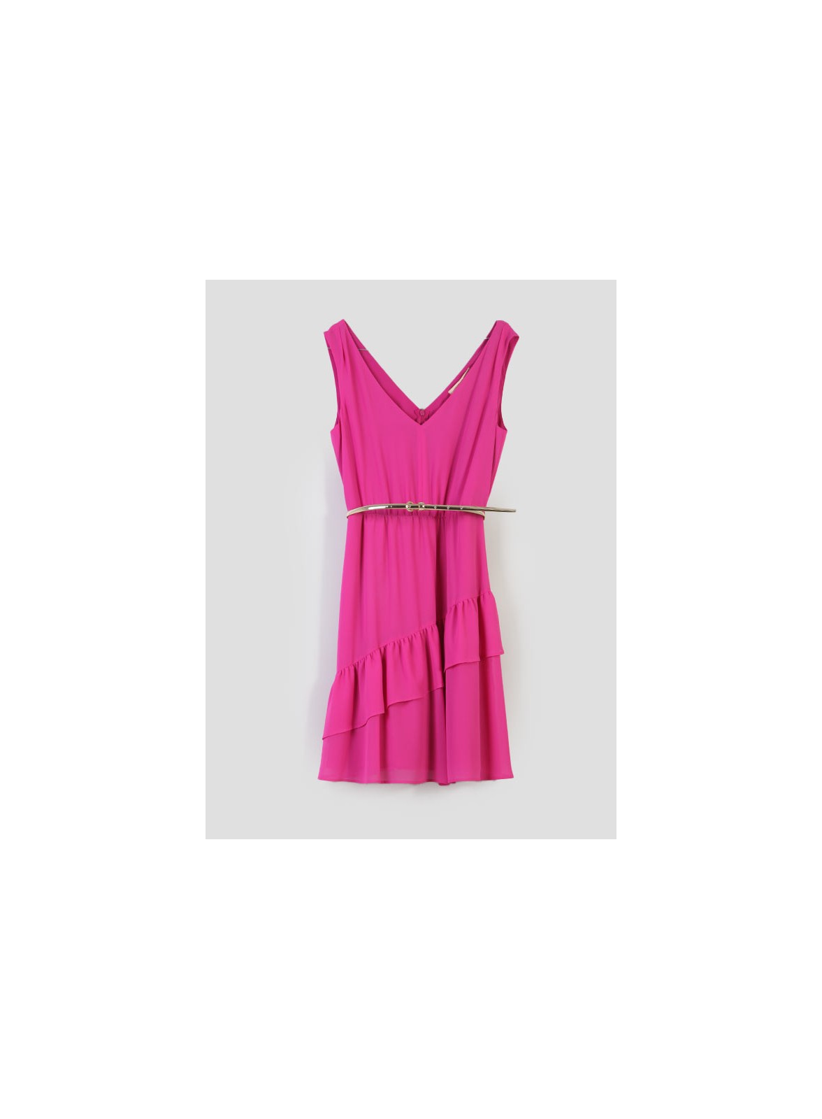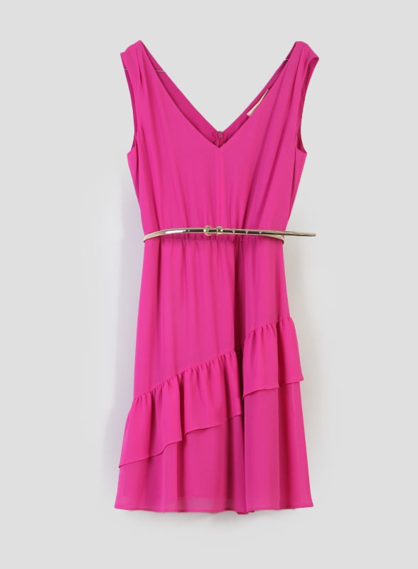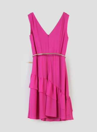 Scopri l'eleganza senza tempo dell’abito firmato PENNYBLACK, realizzato in georgette leggera e fluida. Le sue linee morbide accarezzano il busto, mentre la vita è valorizzata da un’arricciatura delicata che esalta la silhouette. La gonna svasata si arricchisce con una balza asimmetrica che dona movimento e leggerezza a ogni passo. Il design si completa con un ampio scollo a V sia sul davanti che sulla schiena, per un tocco di femminilità sofisticata. La cintura laminata aggiunge un dettaglio luminoso e moderno, rendendo questo capo perfetto per occasioni speciali o serate eleganti. La chiusura è con zip invisibile sul retro. L'abito è completamente foderato per garantire comfort e vestibilità impeccabile.