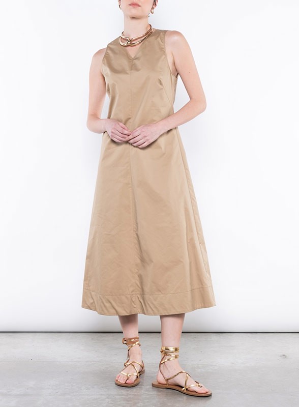 Abito midi svasato firmato KAOS, elegante e versatile con scollo a V, perfetto per ogni occasione, firmato per uno stile raffinato.
