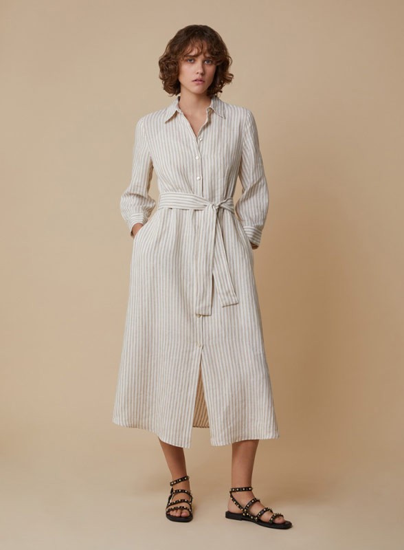 Abito chemisier midi firmato PENNYBLACK in puro lino, con linea femminile e dettagli eleganti. Ideale per l’estate.