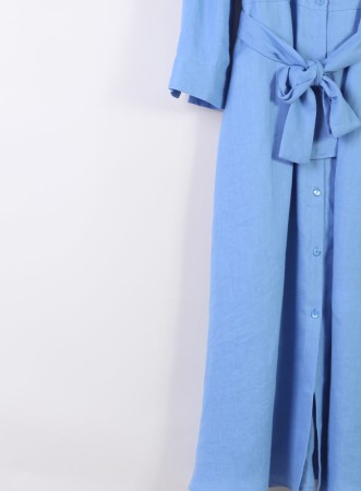 Abito chemisier midi firmato PENNYBLACK, realizzato in tela di puro lino, perfetto per affrontare le giornate estive con eleganza e comfort. Il top ha un taglio slim che valorizza la silhouette, mentre la vita è definita da una cintura in tinta da annodare, per una vestibilità regolabile e raffinata. La gonna è svasata per un effetto fluido e femminile, completata da un colletto classico e maniche a tre quarti che donano un tocco senza tempo. Le tasche laterali inserite nei fianchi aggiungono funzionalità senza compromettere lo stile.