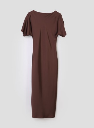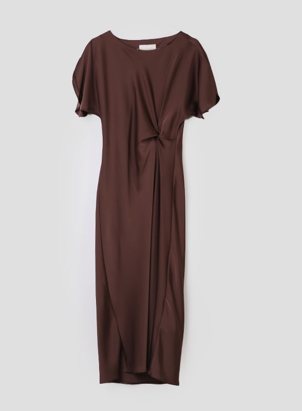 Abito lungo firmato IBLUES in raso fluido, semiaderente con nodo in vita. Eleganza sofisticata per un look glamour firmato IBLUES.