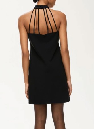 Abito corto firmato IBLUES, realizzato in crêpe dalla linea aderente che valorizza la figura femminile. Il design presenta uno scollo all’americana e un collo a listino chiuso da bottoncini sul retro, insieme a listini decorativi. Foderato per garantire comfort e vestibilità ottimale.