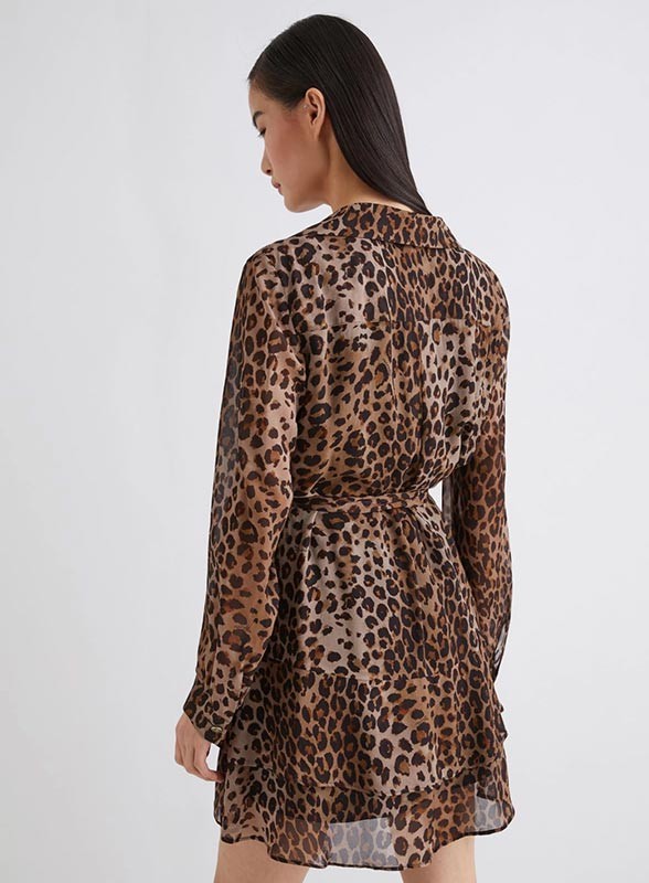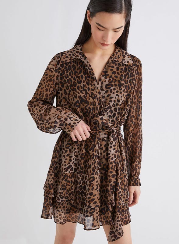 Abito firmato MARELLA realizzato in georgette di pura viscosa, caratterizzato da un fit dritto e da un design elegante e femminile. Il modello presenta un raffinato collo a camicia con apertura a V che valorizza la scollatura e maniche lunghe con polso arricciato per un tocco delicato e sofisticato. La gonna, arricchita da una doppia balza, conferisce movimento e leggerezza all’insieme, mentre la cintura in vita delinea con armonia la silhouette, esaltando la figura. L’abito è foderato internamente per garantire comfort e una perfetta vestibilità.
