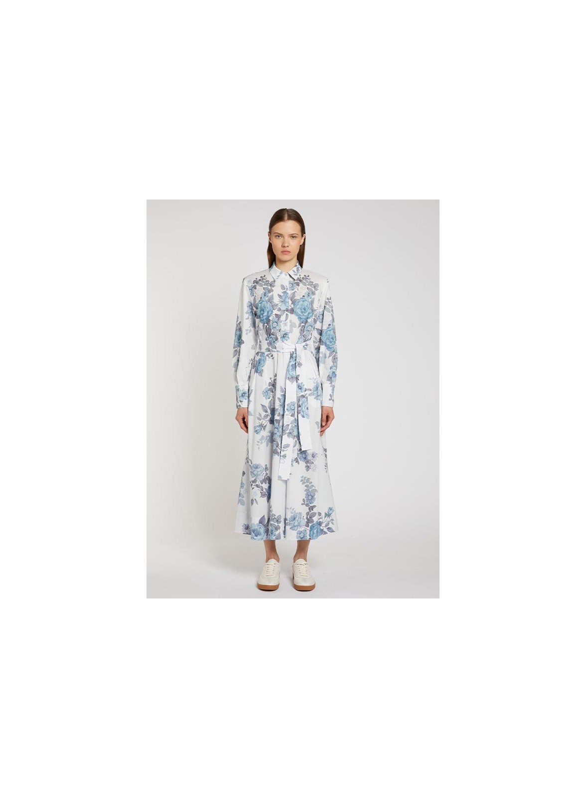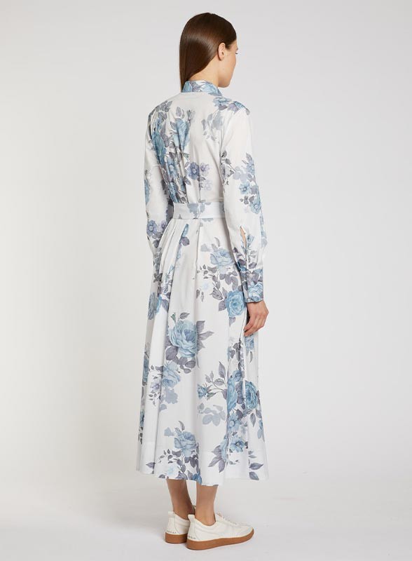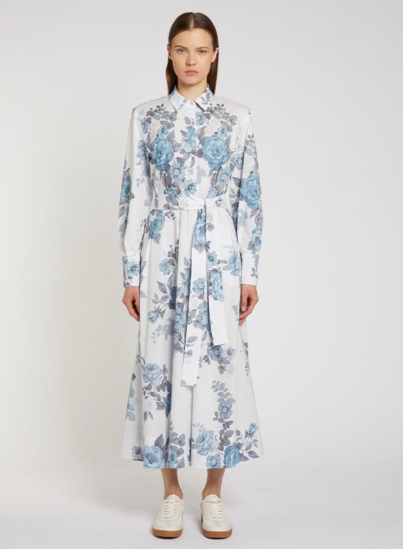 Abito chemisier firmato MARELLA in popeline di cotone stampato, con cintura in tinta e fit regolare. Elegante e versatile.