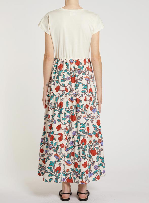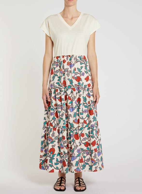 Abito firmato PENNYBLACK in cotone: top slim in jersey e gonna a balze in popeline, leggero e femminile, perfetto per ogni occasione.