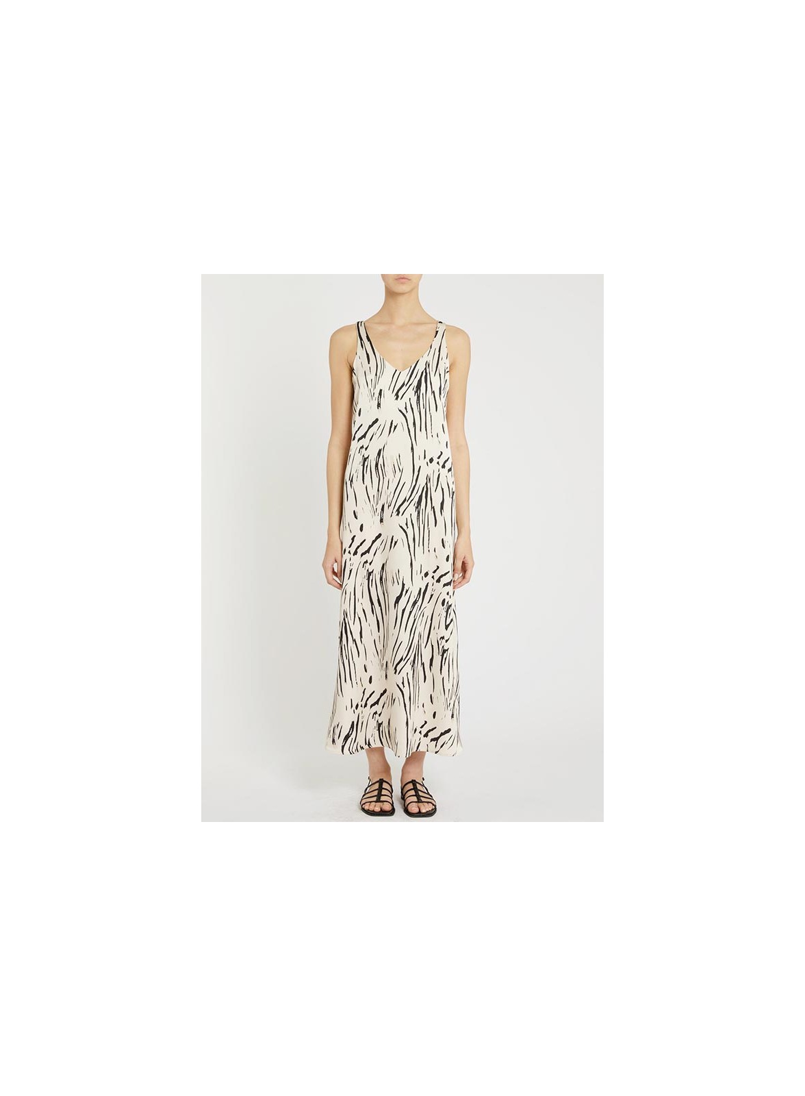 Abito midi in doppio raso firmato PENNYBLACK, elegante e fluido, con scollo a V fronte e retro e linea leggermente svasata.