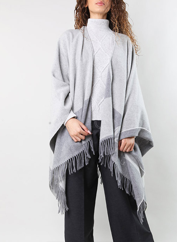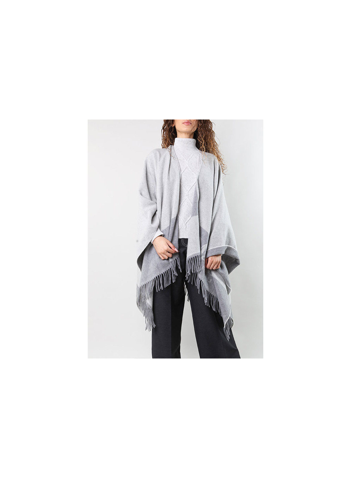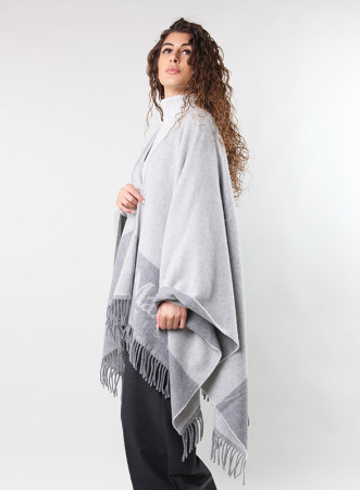 Poncho firmato OLIVIA in lana e cachemire con frange lunghe, elegante e versatile per ogni occasione.