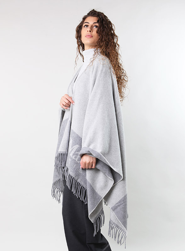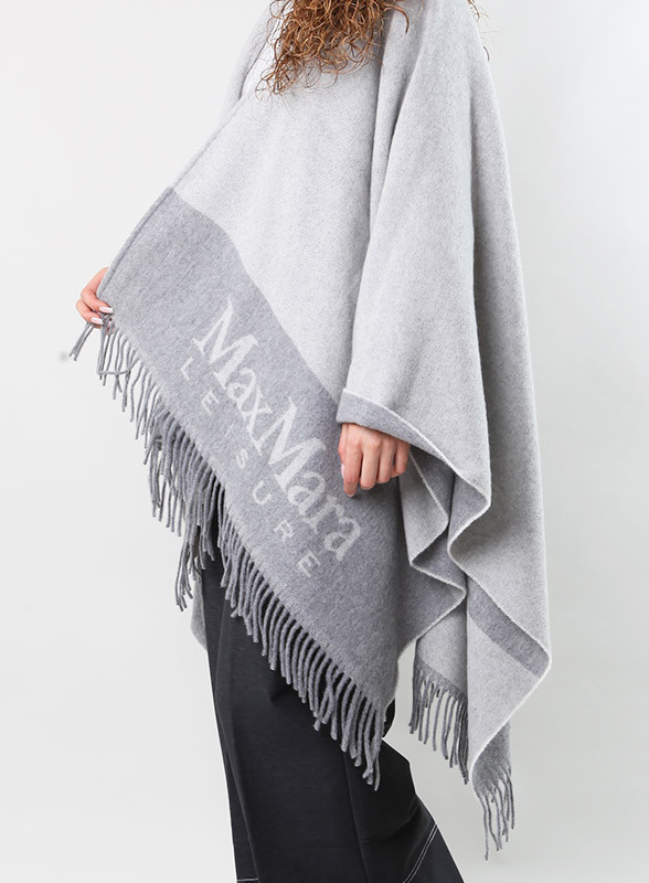 Poncho in lana dalla linea essenziale rifinito con motivo di frange al fondo. Il motivo bi-color e il logo con lavorazione jacquard impreziosiscono l'accessorio. Disponibile anche nei colori: bordeaux, cammello e blu. Max Mara Leisure è la linea di abbigliamento di Max Mara che si distingue per il suo stile casual chic. Le collezioni Leisure sono caratterizzate da linee fluide e tessuti morbidi, Made in Italy.