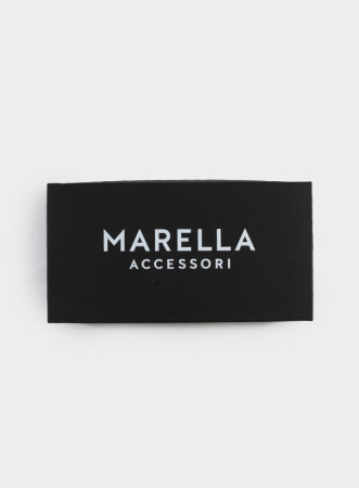 Borsa elegante firmata Marella con logo metallico, manico a catena e tracolla regolabile, perfetta per ogni occasione. Scopri la nuova collezione.