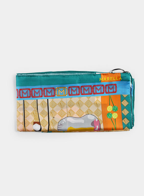 Foulard firmato Marella in seta twill: tocco pop multicolor per ogni outfit della collezione SS24.