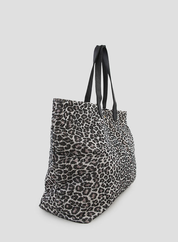 Questo accessorio moda, dotato di due manici, unisce praticità e stile. La sua spaziosa capienza la rende ideale per ogni occasione, mentre la stampa leopardata conferisce un tocco glamour unico. All'interno, è foderata e offre due tasche interne per mantenere gli oggetti essenziali organizzati.