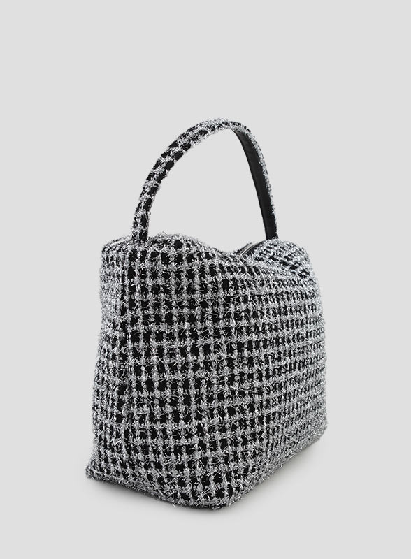 La lavorazione a reticolato in glitter argento conferisce un tocco di raffinata brillantezza, mentre il comodo taschino interno assicura ordine e praticità. Foderata per una maggiore durata, questa borsa incarna l'essenza dello stile originale e ricercato del brand Gabriella Boutique.