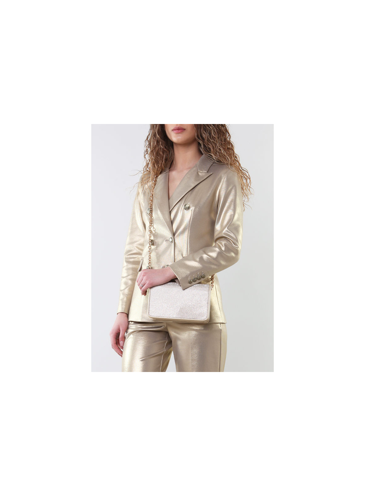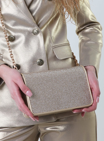 Borsa firmata Marella: Glitter Oro, chic e funzionale per i tuoi look più cool. Chiusura con patta e tracolla amovibile della collezione SS24.