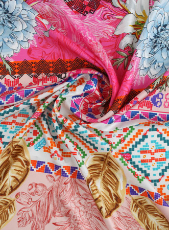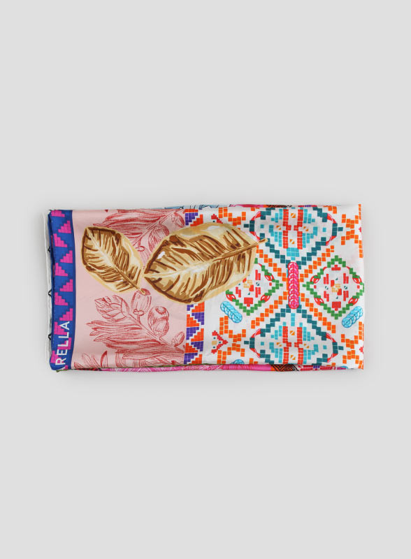 La fantasia pop multicolor dona carattere ad ogni outfit, sia che lo abbiniate con un paio di jeans per un look casual, oppure con pezzi dai colori coordinati per uno stile glam. I lati sono finemente orlati, evidenziando la qualità artigianale del prodotto.