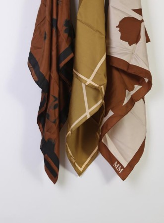 Foulard firmato MM MAXMARA in pura seta twill con stampa all over, finiture sartoriali e dettagli eleganti.