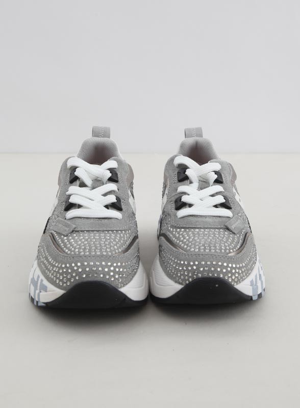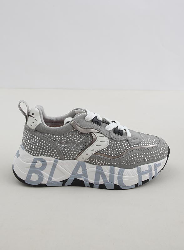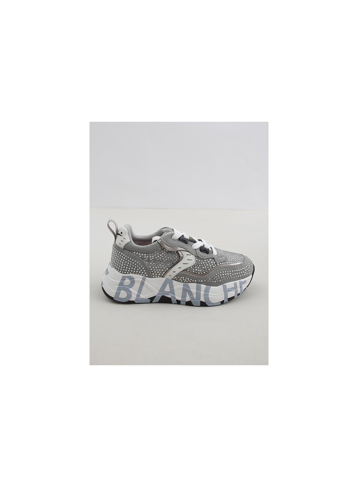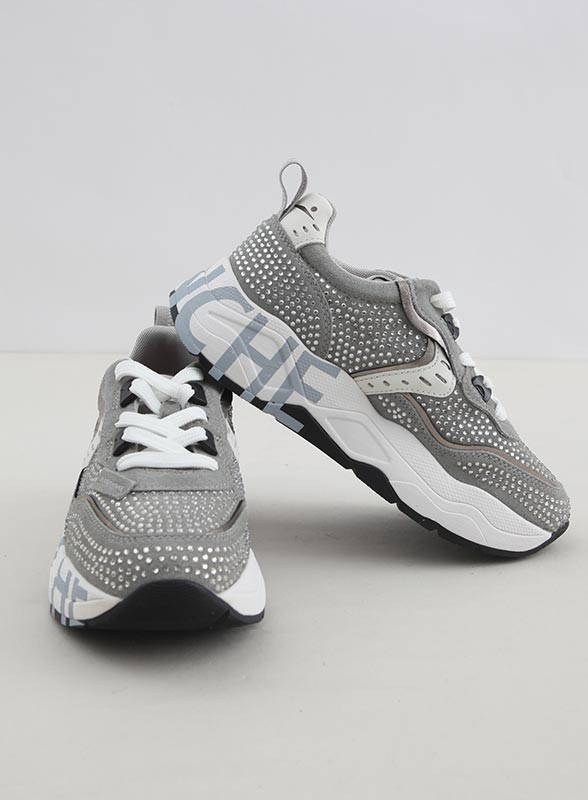 Sneakers firmate VOILE BLANCHE, in pelle e suede con micro cristalli. Suola leggera in gomma e dettagli ricercati.