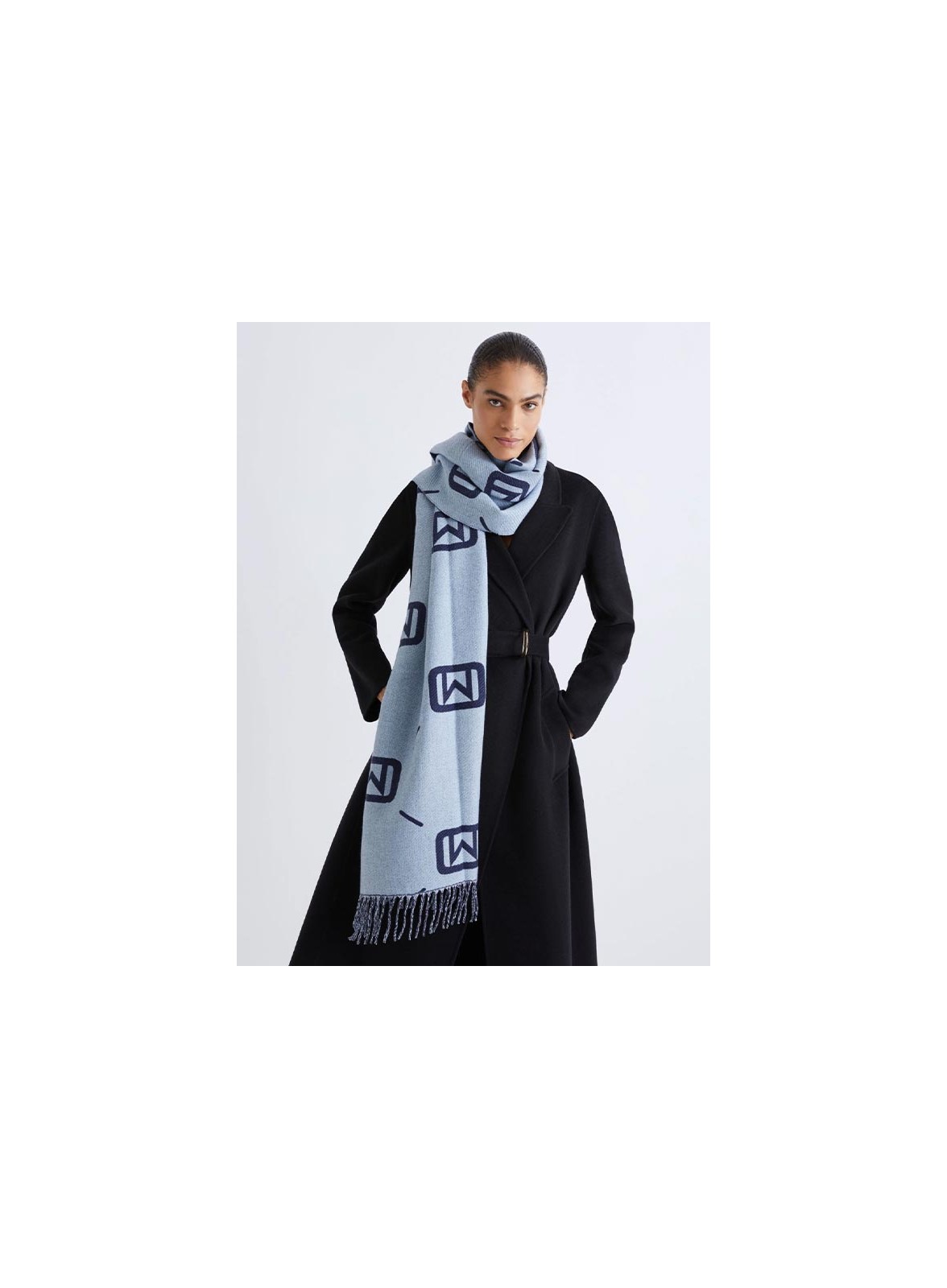 Stola firmata MARELLA, elegante accessorio double face in misto viscosa con lavorazione jacquard e maxi logo, perfetta per completare ogni outfit con stile e raffinatezza. I lati corti presentano frange che donano movimento e leggerezza al capo.