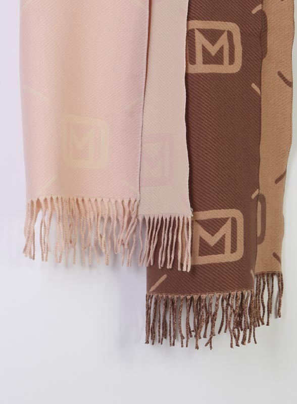 Stola firmata MARELLA, double face in misto viscosa jacquard con maxi logo e frange. Elegante e versatile. CONTATTATECI SU WHATSAPP.