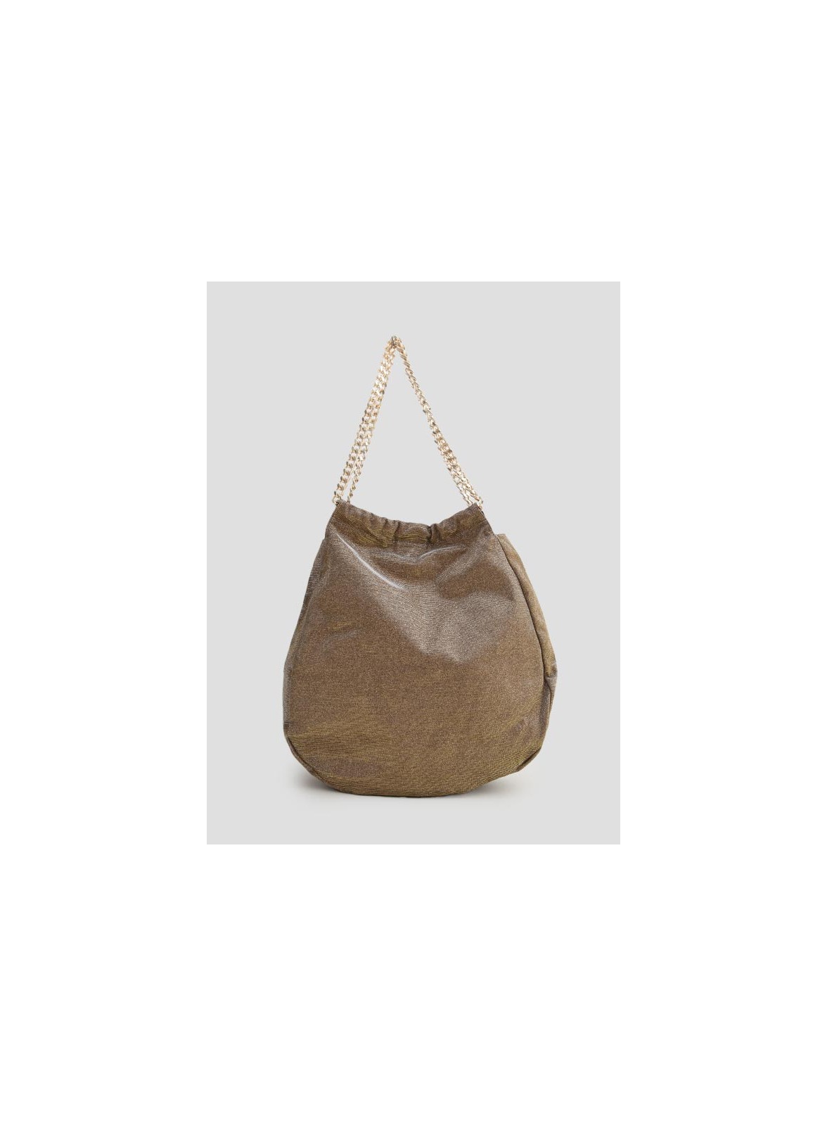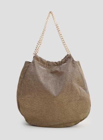 La borsa firmata L’AURA BAG è un accessorio dallo stile sofisticato e contemporaneo, pensato per accompagnare ogni donna nelle sue giornate con eleganza e praticità. Realizzata con una raffinata lavorazione glitterata, questa borsa presenta una forma allungata e armoniosa che la rende estremamente capiente, ideale per lo shopping cittadino o per completare con stile anche gli outfit più casual. La catena in oro aggiunge un dettaglio glamour che esalta la brillantezza della superficie e conferisce un tocco di lusso discreto ma deciso.