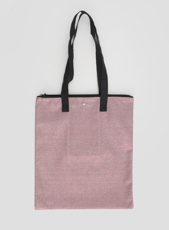 Borsa shopper firmata L’AURA BAG, dal design luminoso e moderno in rivestimento glitterato, perfetta per ogni occasione.