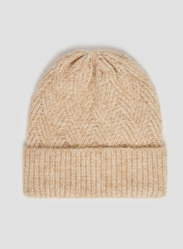 Berretto firmato PENNYBLACK in misto lana con lavorazione chevron e bordi a costine. Elegante e caldo, perfetto per ogni look invernale.