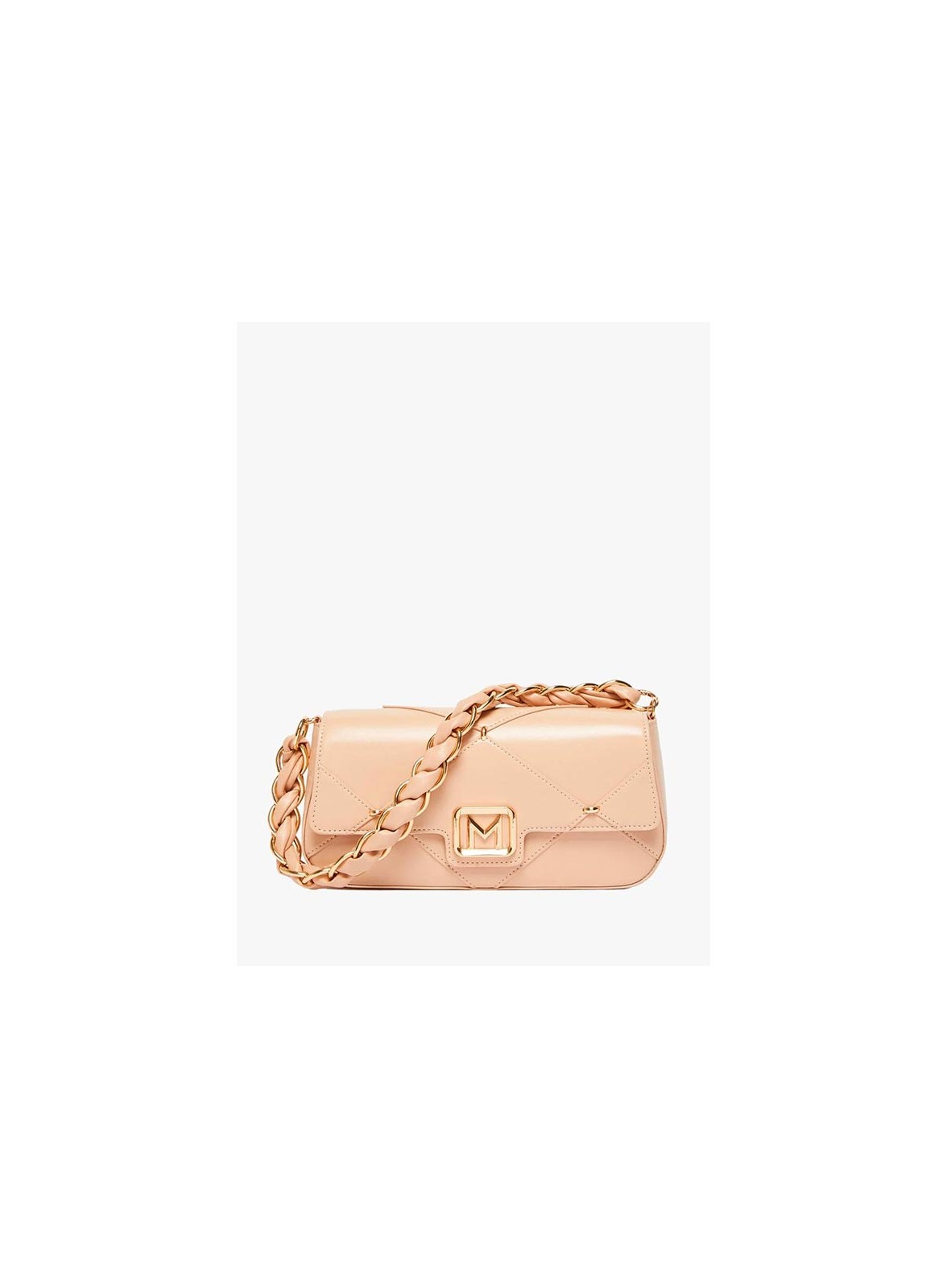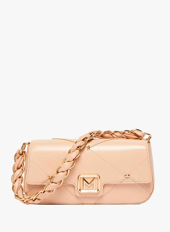 La borsa firmata MARELLA Le Muse è un accessorio raffinato e contemporaneo, pensato per completare con stile ogni look femminile. Realizzata in tessuto spalmato dalla particolare finitura spazzolata, si distingue per l’elegante lavorazione a rombi che dona carattere e ricercatezza. Il manico intrecciato con catena in metallo aggiunge un tocco glamour, mentre la chiusura a patta con calamita e placca logata garantisce praticità e sicurezza. Può essere portata sia a mano che cross body grazie alla tracolla lunga rimovibile. L’interno è rifinito con fodera personalizzata.