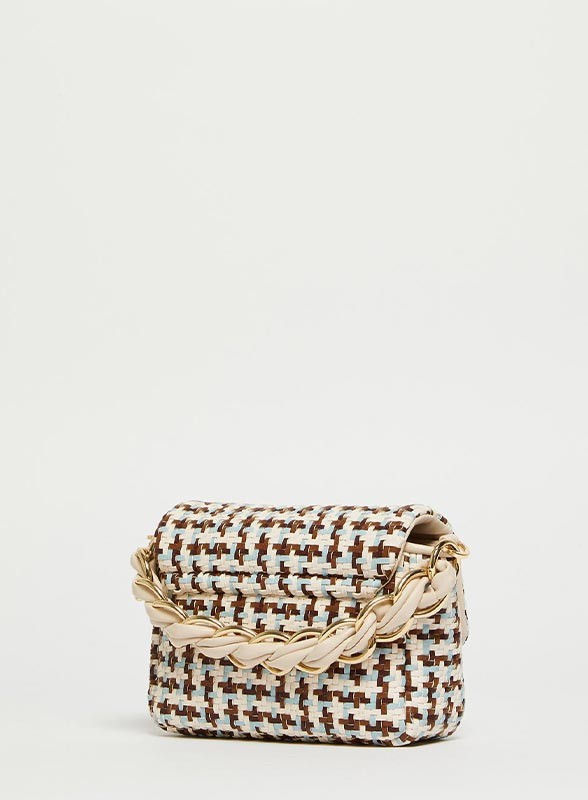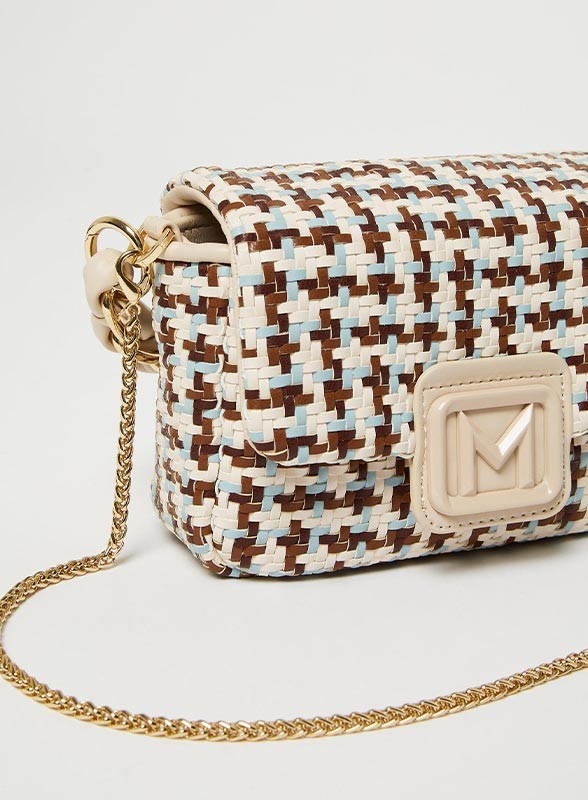 Borsa LE MUSE firmata MARELLA in tessuto multicolor con raffinato intreccio e dettagli metallici verniciati on tone. Il manico intrecciato con catena in metallo dona carattere e modernità, mentre la chiusura a patta con calamita e placca logata con finitura a contrasto valorizza il design. Fodera interna personalizzata. Portabile a mano o cross body grazie alla tracolla lunga removibile. Questa borsa unisce stile e funzionalità, perfetta per completare ogni look con eleganza.