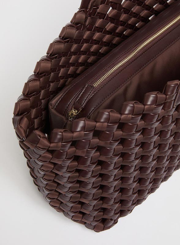 Borsa shopper versatile firmata MARELLA, in tessuto intrecciato con clutch interna e dettaglio metallico, perfetta per ogni giorno.