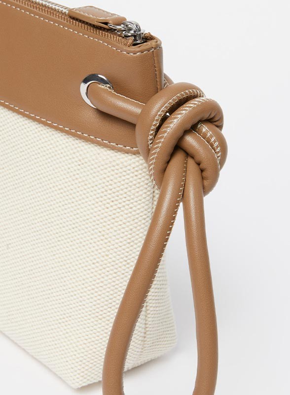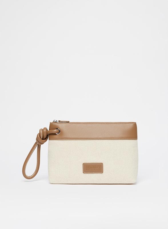 Borsa pochette firmata MM MAXMARA in canvas di cotone, compatta e raffinata, con dettagli iconici e chiusura zip.