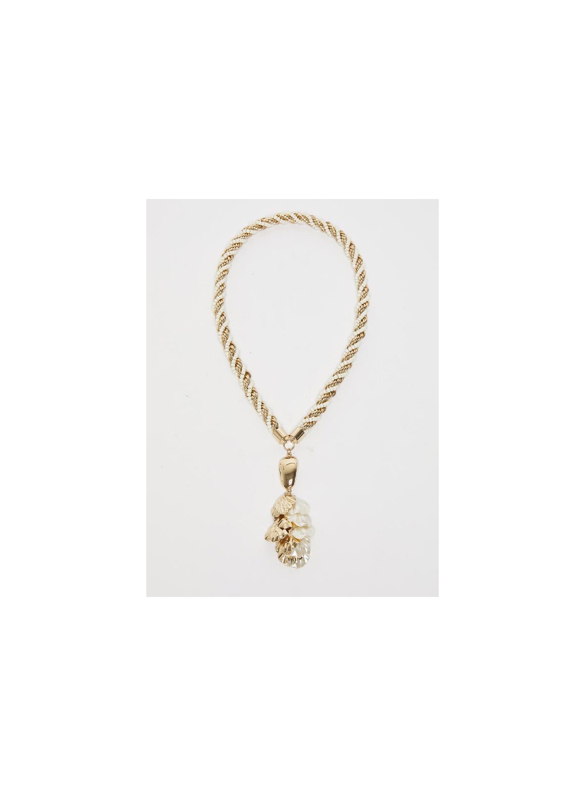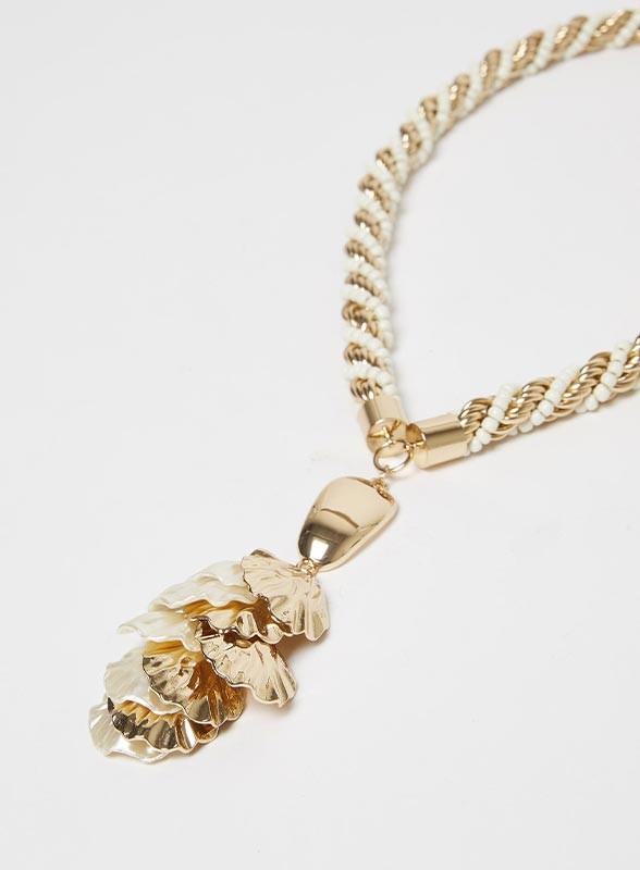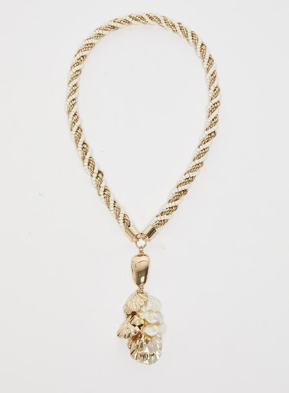 Collana lunga scenografica firmata Marella con pendente a conchiglie dorate, perfetta per look estivi eleganti e luminosi.