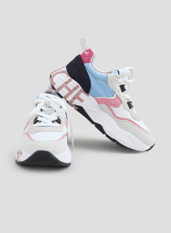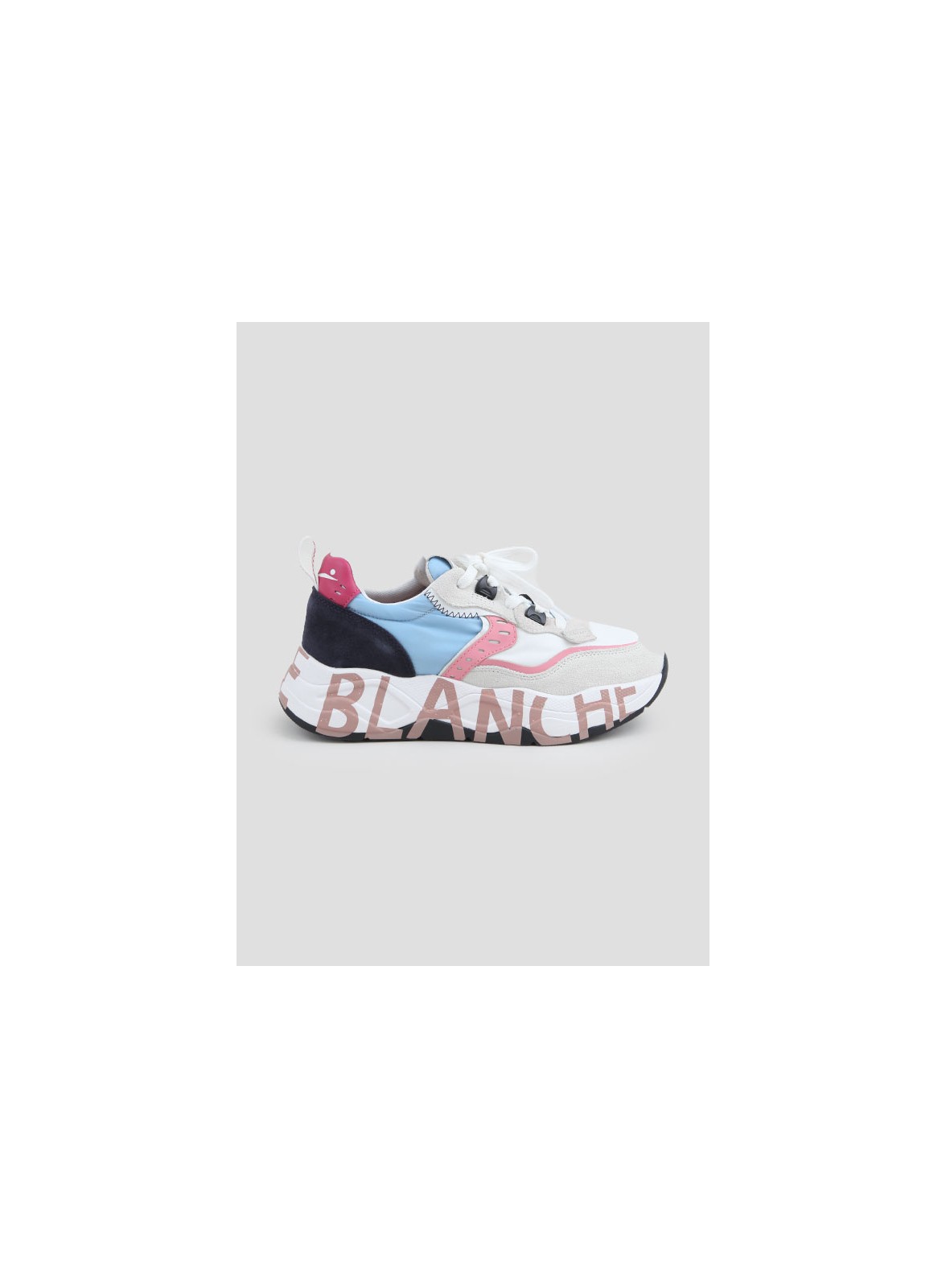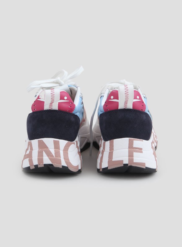Sneakers firmate VOILE BLANCHE, modello Club, caratterizzate da uno stile bold e deciso che unisce comfort urbano e design moderno. La tomaia è realizzata in tessuto tecnico e suede, perfetta per affrontare con stile le giornate primaverili o estive in città. Gli occhielli rinforzati garantiscono una maggiore resistenza, mentre i dettagli in pelle a contrasto aggiungono un tocco distintivo ed elegante. La suola plateau in gomma ultra leggera, con stampa serigrafata sul bordo, dona slancio alla figura e comfort durante la camminata.