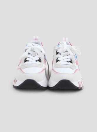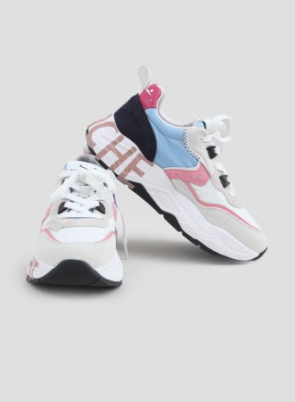 Sneakers firmate VOILE BLANCHE dal carattere deciso, con suola plateau e dettagli in pelle a contrasto. Firmate per uno stile audace.