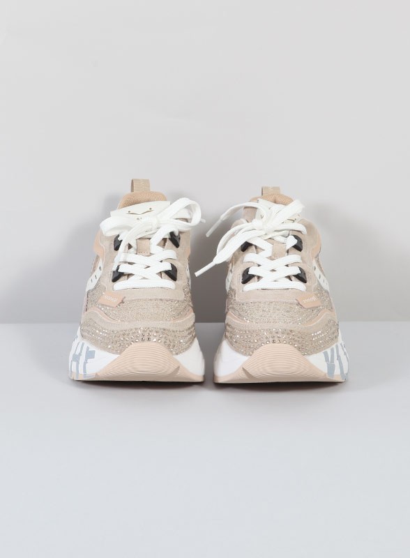 Le SNEACHERS firmate VOILA BLANCHE sono la scelta perfetta per chi desidera unire stile e comodità senza rinunciare all’eleganza. Realizzate in tessuto effetto bouclé con punti luce, sono impreziosite da dettagli in pelle laminata e suede che conferiscono un look sofisticato e contemporaneo. La suola spessa in gomma ultra leggera, arricchita da un bordo serigrafato, garantisce un comfort eccellente durante tutta la giornata. Questo modello rappresenta l’incontro perfetto tra innovazione e design, pensato per donne che vogliono distinguersi e non passare inosservate.