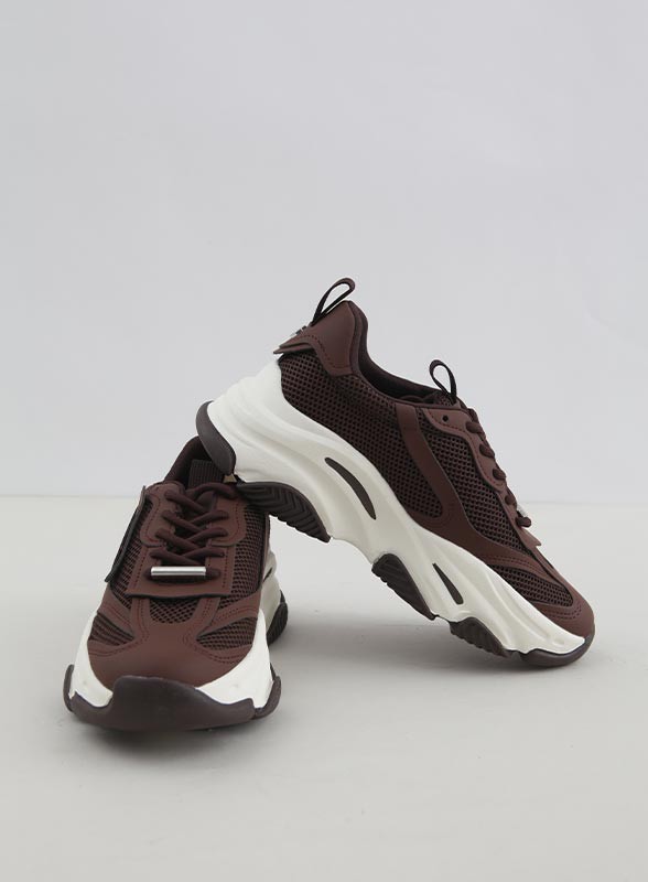 Sneakers firmata STEVE MADDEN, platform in similpelle e tessuto, suola in gomma, perfetta per uno stile casual e contemporaneo.