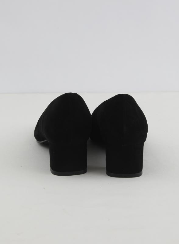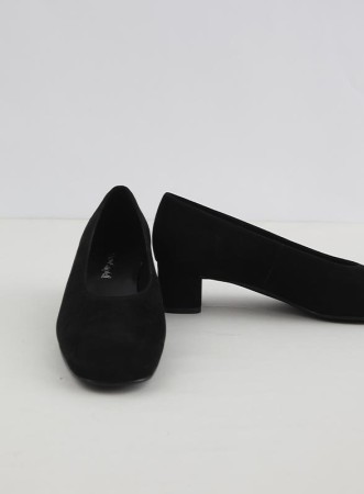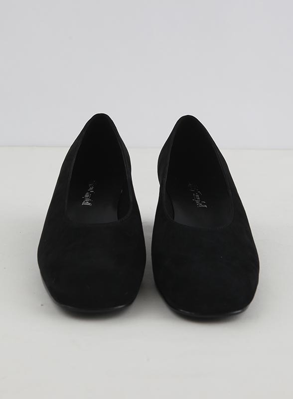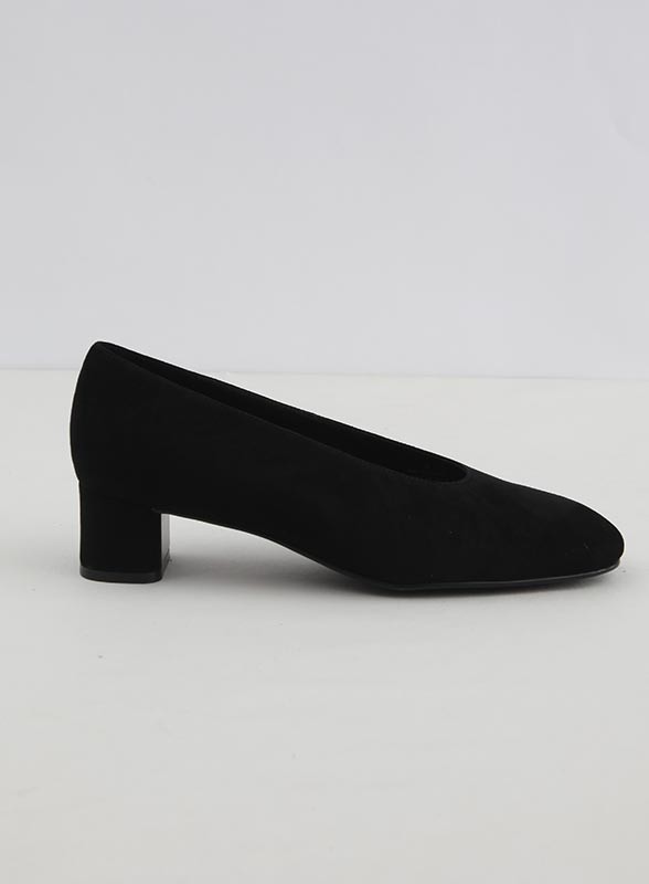 Decollette firmata JEFFREY CAMPBELL in suede, con tacco basso e punta arrotondata. Eleganza e comfort per ogni occasione.