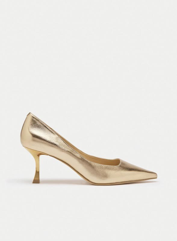 Décolleté firmata PENNYBLACK dal design classico e dalla silhouette femminile, pensata per completare con eleganza ogni outfit. Le golden pumps rappresentano l’accessorio ideale per occasioni speciali e party look, ma si abbinano perfettamente anche a un outfit più casual con jeans, aggiungendo un tocco luminoso e sofisticato. La punta affusolata slancia la figura mentre il tacco laminato a specchio alto 7 cm garantisce stabilità e stile.