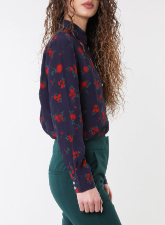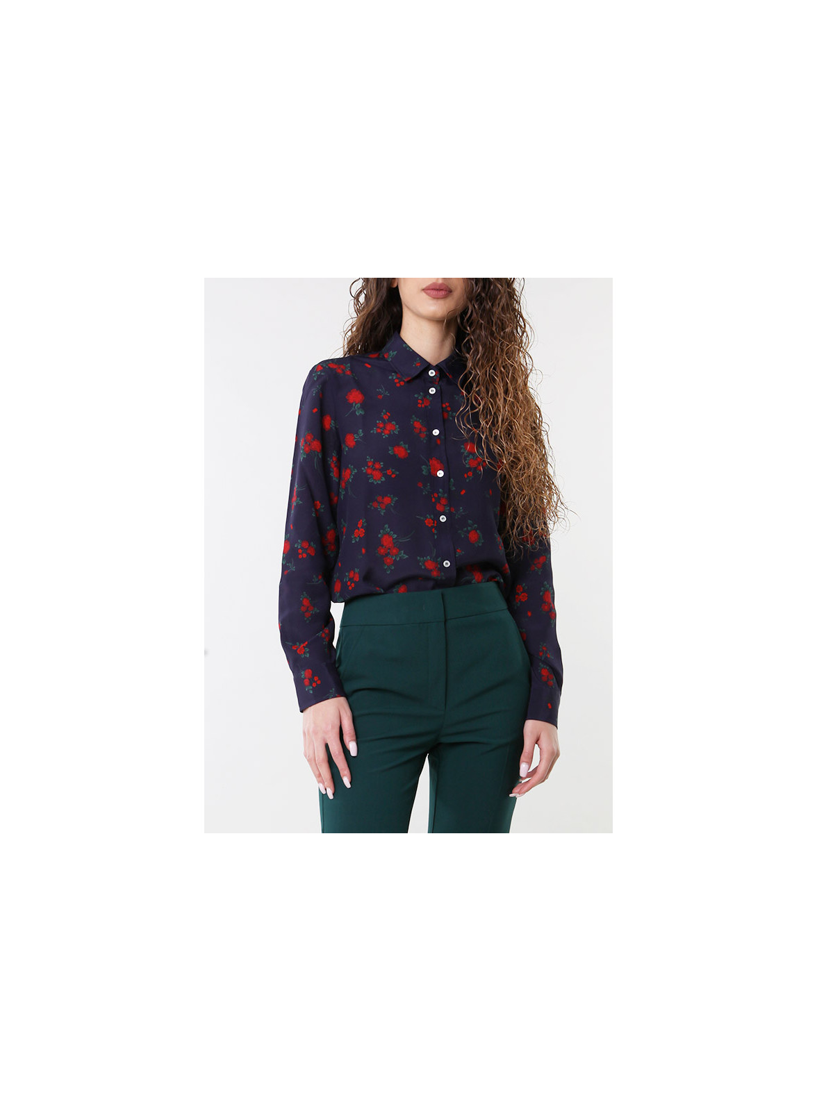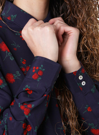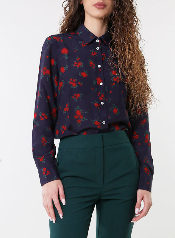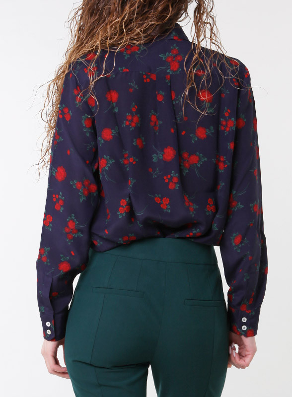 Camicia firmata IBLUES in raso, dalla linea morbida e dritta con colletto. Maniche lunghe con polsini arricciati e bottoni. Chiusura con bottoni nascosti.