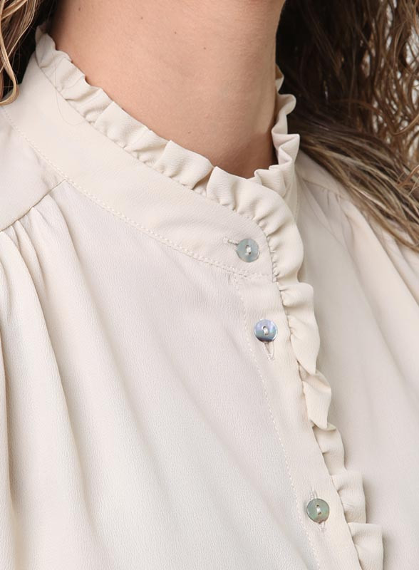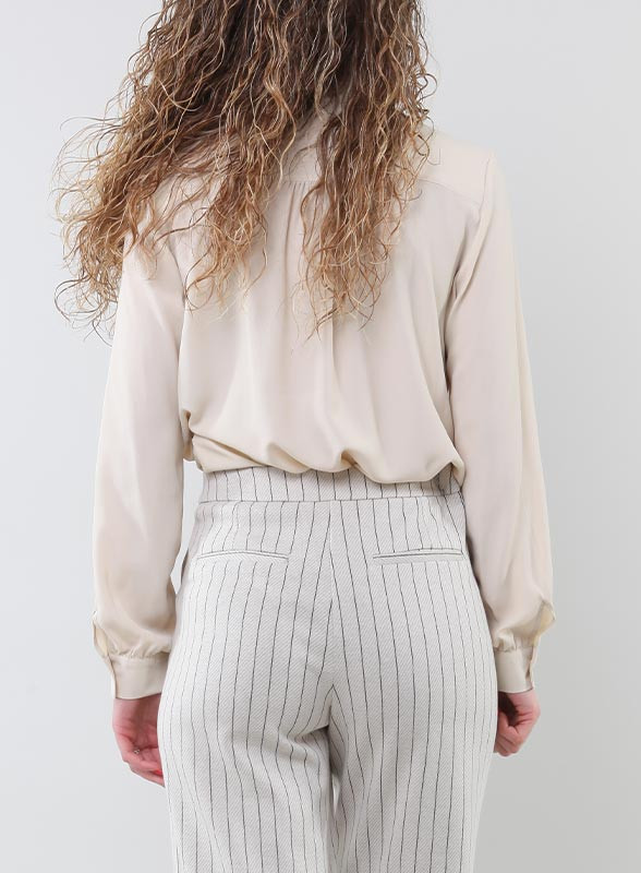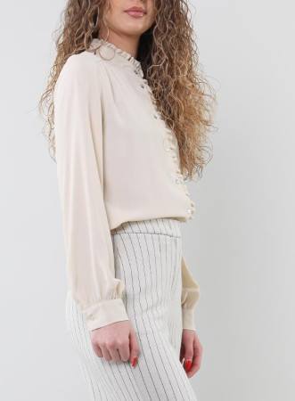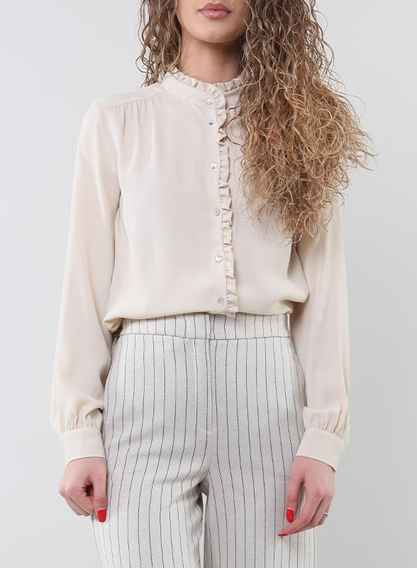 Camicia in crêpe firmata Iblues de chine misto seta con ruches e dettagli arricciati della collezione SS24.