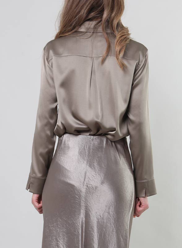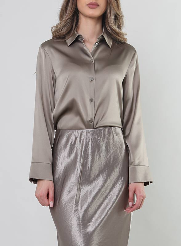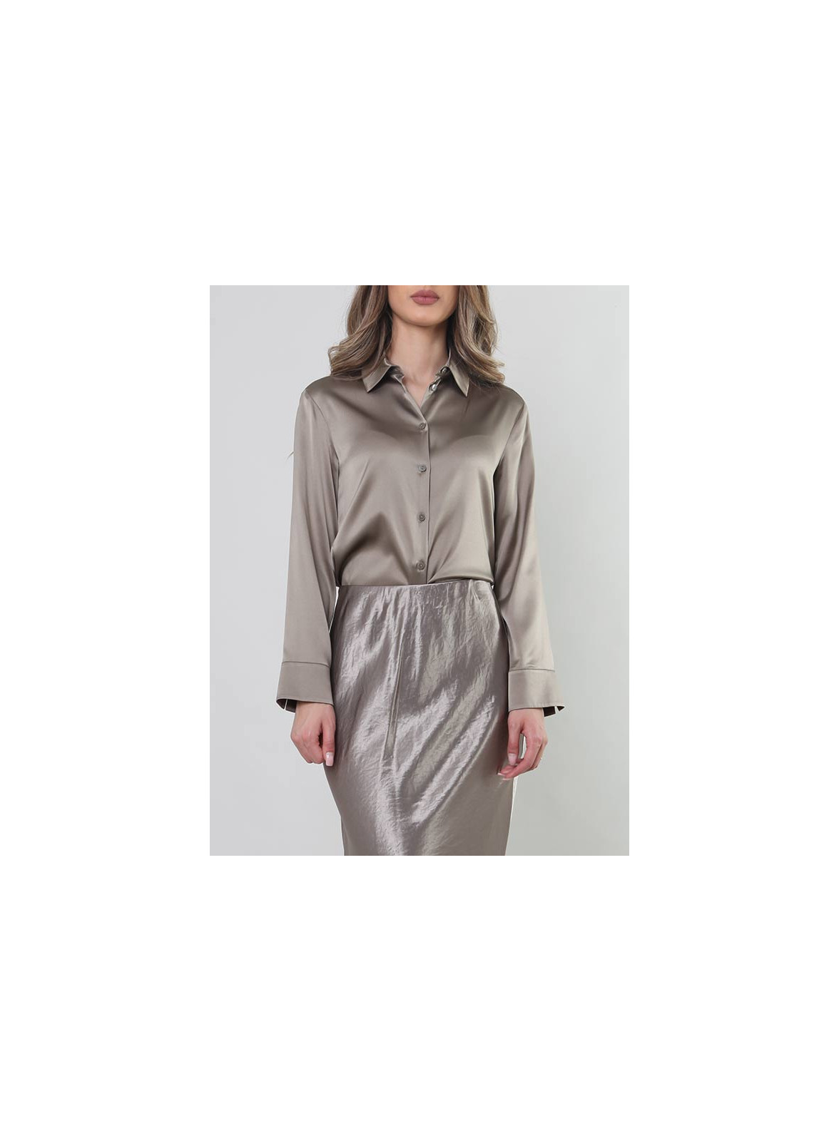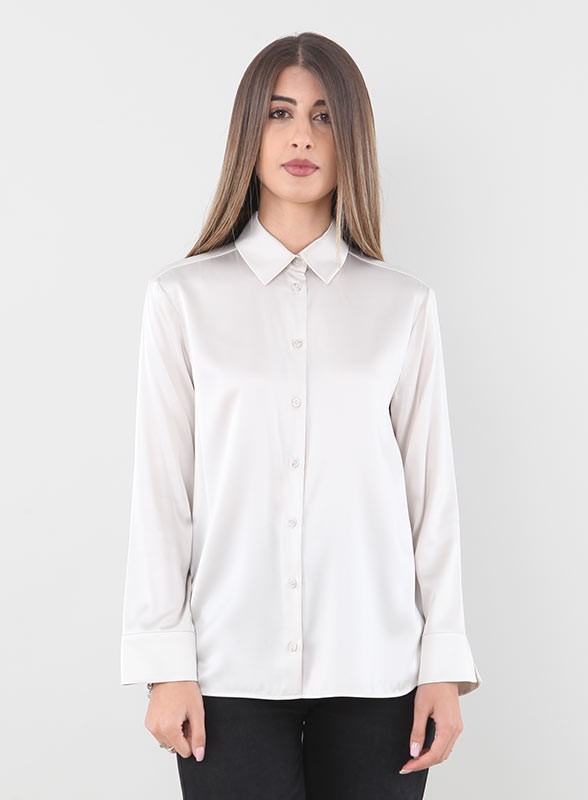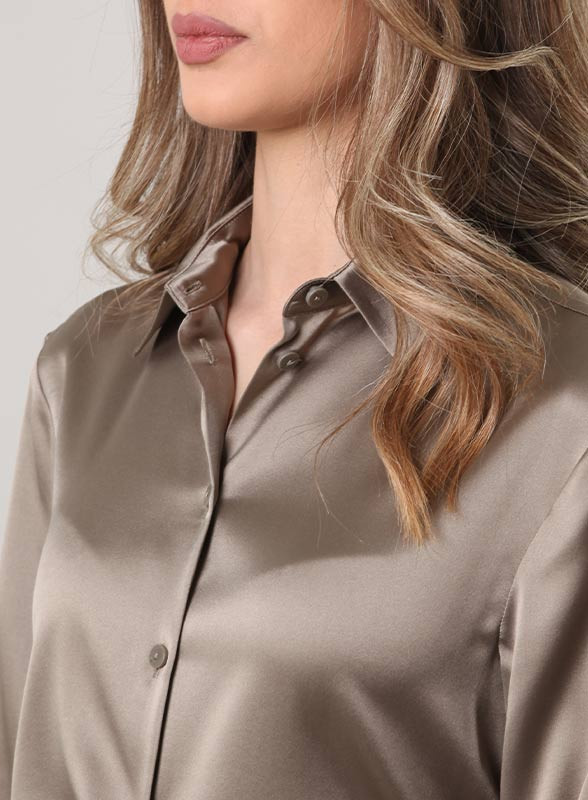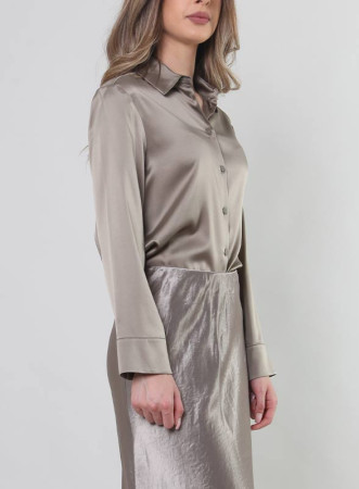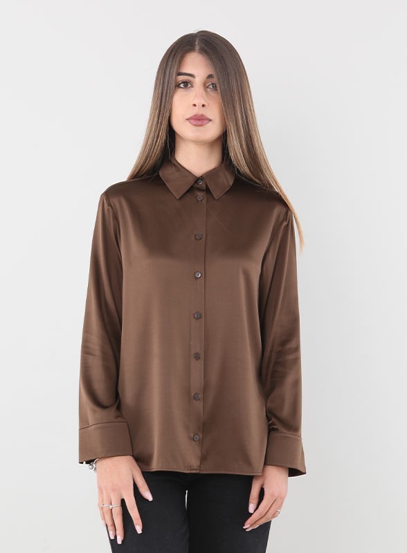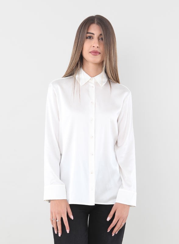 Camicia firmata MaxMara Leisure in misto seta, colletto classico, maniche lunghe con polsino e spacchi laterali.