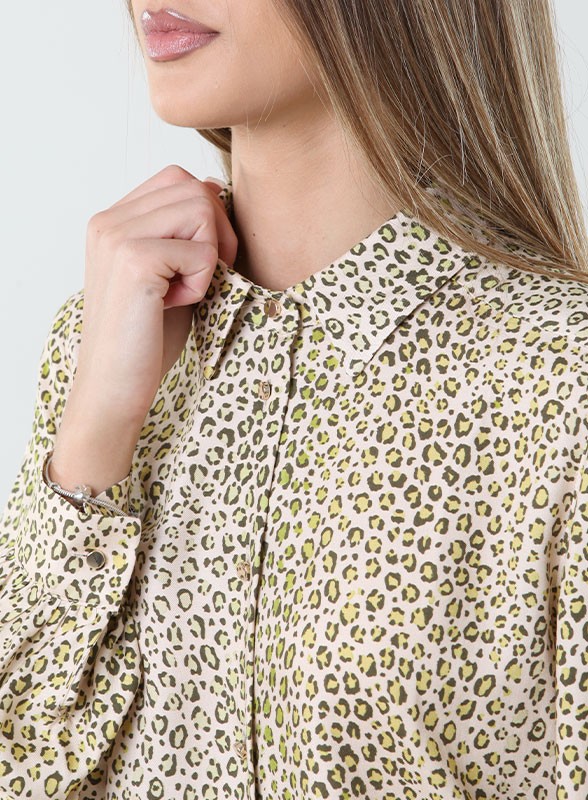 La sua linea dritta, arricchita da un colletto classico e una chiusura con bottoni, offre una vestibilità perfetta per ogni occasione. Le maniche lunghe sono dotate di polsini arricciati, aggiungendo un tocco di originalità al design. Sul retro, un'arricciatura ben posizionata dona movimento al capo, rendendolo non solo bello da vedere, ma anche piacevole da indossare. La stampa vivace e alla moda rende questa camicia ideale per chi desidera distinguersi con classe. Puoi abbinarla a un paio di jeans per un look casual-chic oppure indossarla con una gonna elegante per un evento speciale. Versatile e trendy, è perfetta per completare ogni tipo di outfit, sia per una giornata in ufficio che per una serata fuori. Scegli la camicia Iblues per portare il tuo stile a un livello superiore. Con la sua freschezza e glamour, diventerà un must-have nel tuo guardaroba!