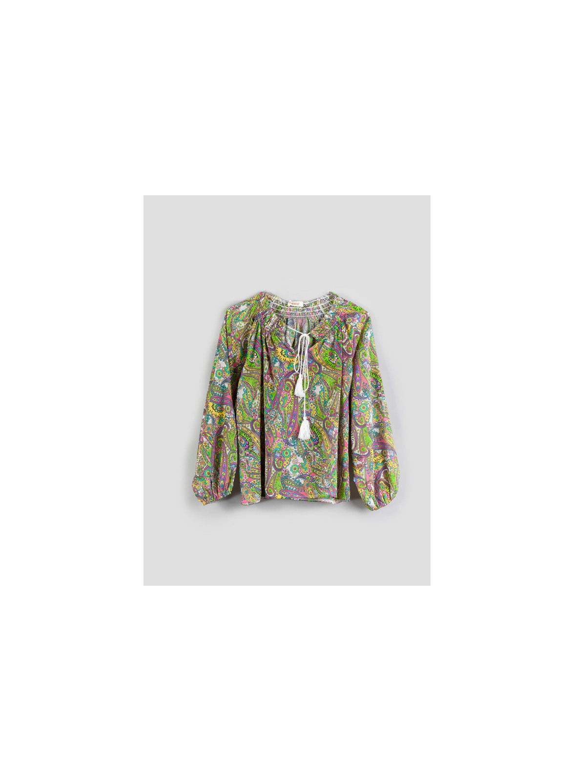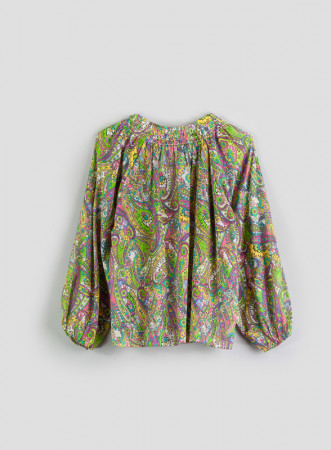 Blusa donna a manica lunga fantasia cachemire multicolor dalla vestibilità regolare. L'abbigliamento firmato Kontatto è pensato per soddisfare ogni esigenza della donna moderna. Al passo con le tendenze, il brand italiano propone capi pratici e giovanili.