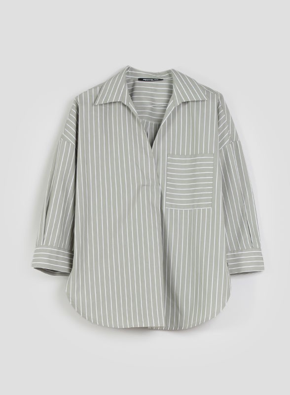 Camicia firmata PENNYBLACK, righe bastonetto, collo a camicia, scollo a V. Scopri la nuova collezione.