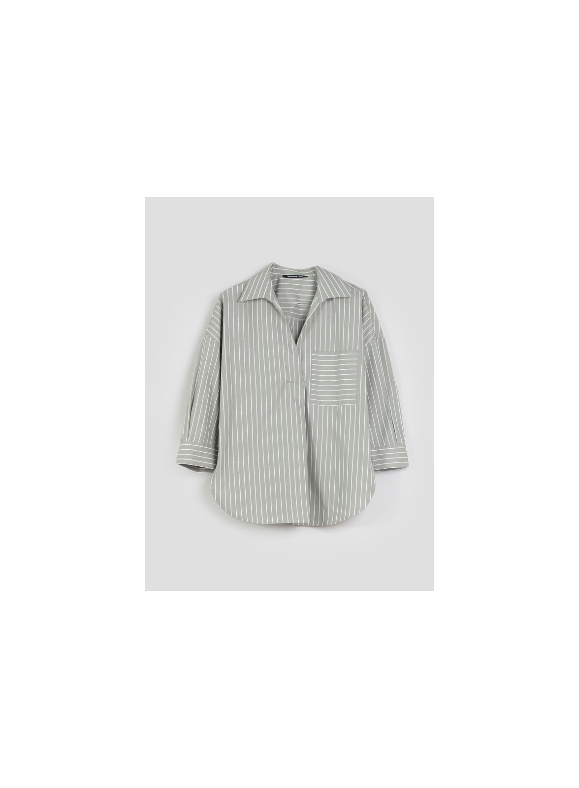 Camicia firmata PENNYBLACK, realizzata in popeline di cotone con linee ampie e dritte. Presenta un collo a camicia e uno scollo a V, un taschino applicato e una piega centrale sul davanti. Sul retro, un carrè e un cannoncino. Maniche a tre quarti con spacchetti ai polsi. Il tessuto principale contiene cotone coltivato attraverso una coltura rigenerativa che migliora la qualità del suolo.