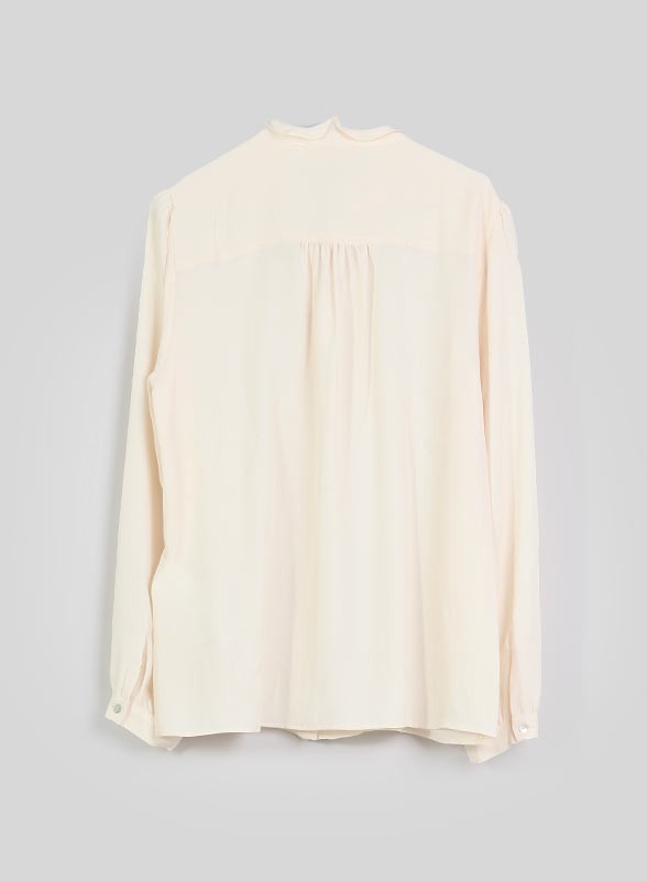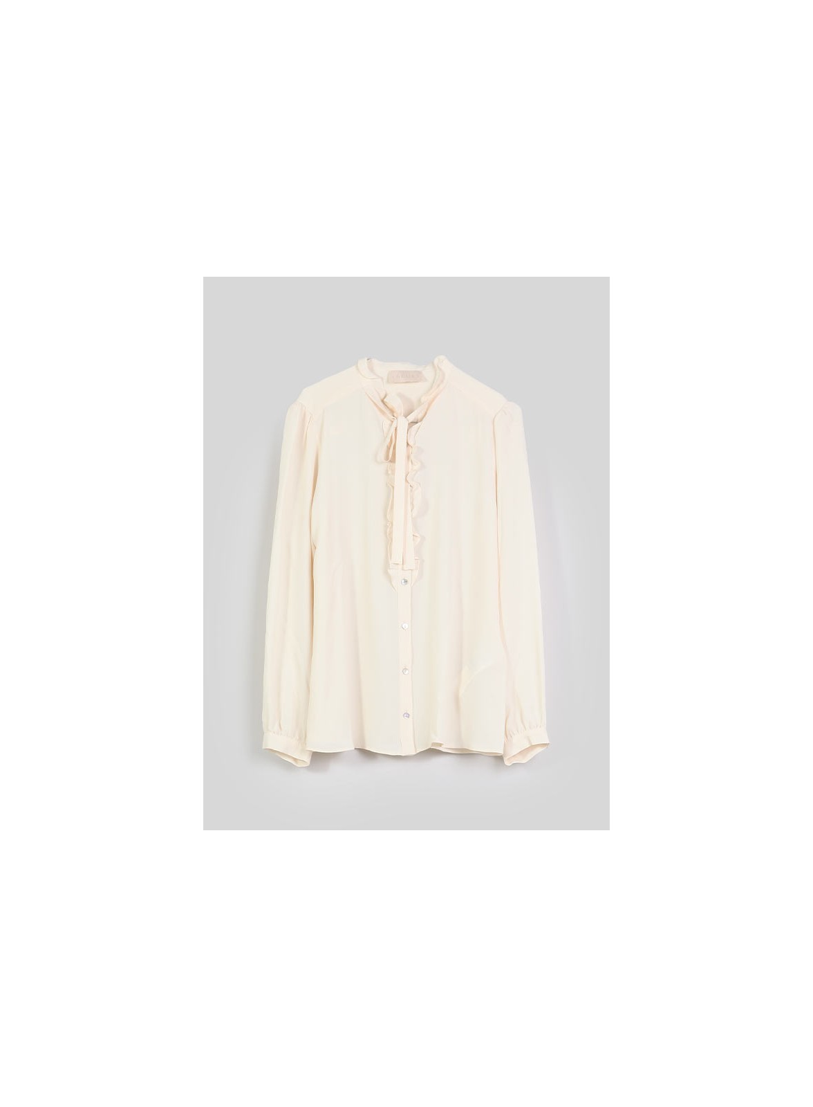 La camicia firmata IBLUES è un capo raffinato e versatile, realizzato in crêpe de Chine misto seta. La linea morbida e dritta, con il collo a listino impreziosito da rouche e fiocco, conferisce un tocco di eleganza senza tempo. Le maniche lunghe sono dotate di polsini con bottone, mentre sul retro una morbida arricciatura aggiunge movimento al capo.