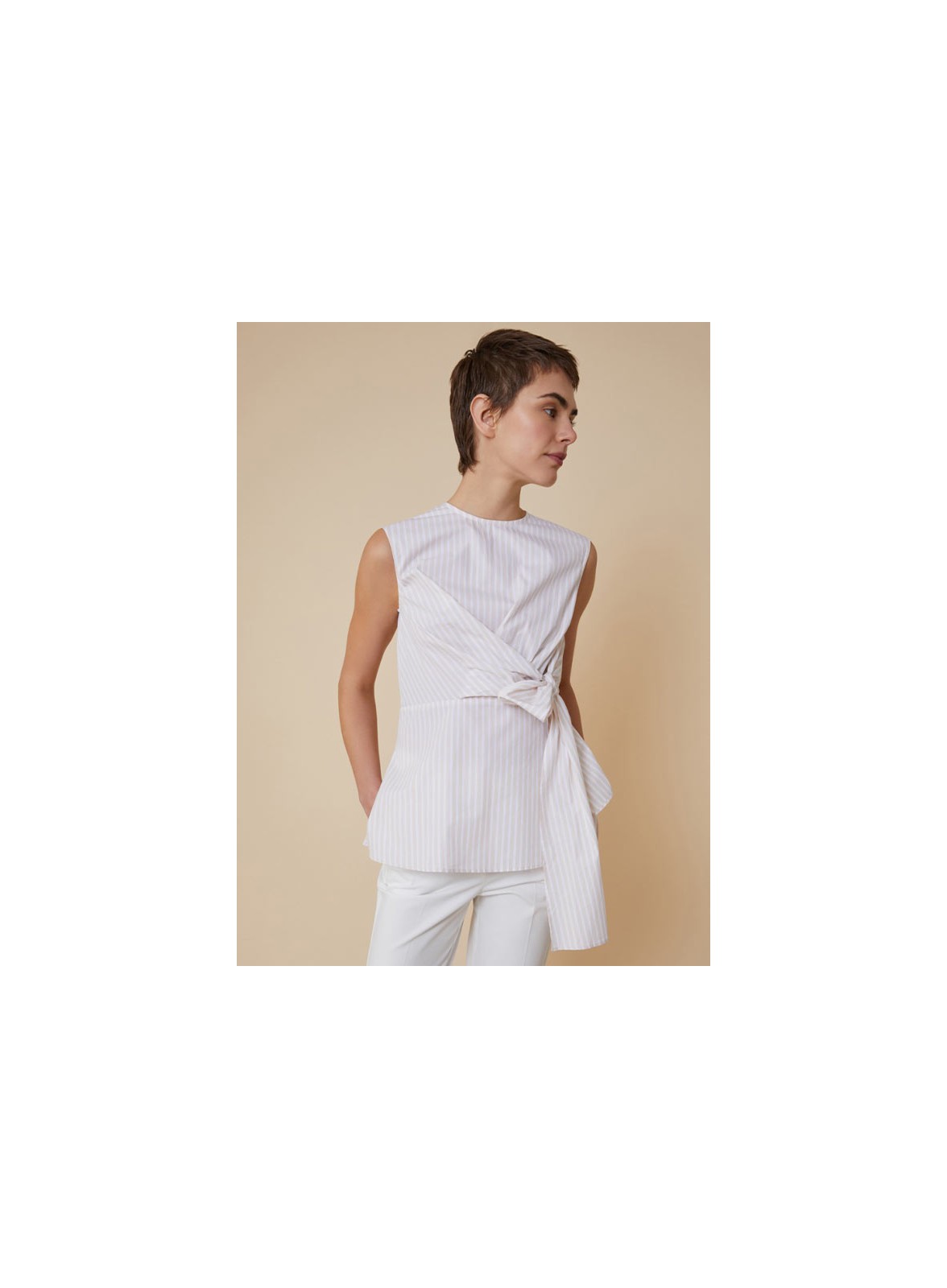 Camicia firmata PENNYBLACK dal design moderno e femminile, realizzata in popeline di cotone. Il taglio slim sottolinea la figura, mentre la vita è messa in risalto da eleganti fusciacche da annodare sul fianco. Gli spacchi laterali sul fondo aggiungono comfort e movimento, e la chiusura sul retro con zip invisibile conferisce un tocco raffinato e minimale. Un capo versatile, perfetto per essere indossato sia in occasioni formali che nel tempo libero, da abbinare a pantaloni a vita alta o gonne midi.